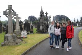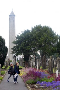 It was a rainy day in Dublin City, but that didn’t keep us down. Instead: we donned raincoats and popped umbrellas and headed north to Glasnevin Cemetery–the city’s largest graveyard. Within the cemetery’s confines lie some of the nation’s most renowned personages. We peeped final resting places of politician, Glasnevin founder, and Irish “Liberator” Daniel O’Connell; revolutionary and actress Maud Gonne; heralded politician Michael Collins; and gun-toting nationalist Countess Markievicz. We wrote poetry and prose in the drizzle. And, when the clouds parted for a short, misty hour, we took to the plots exploring final messages and momentos. Oh, the things we discovered!